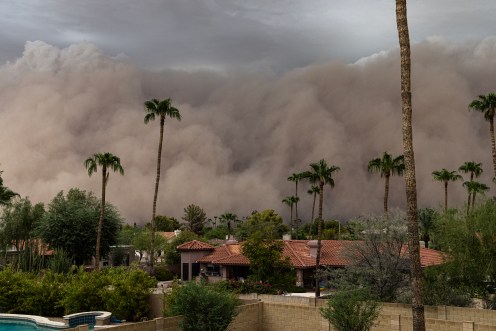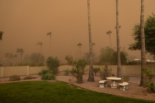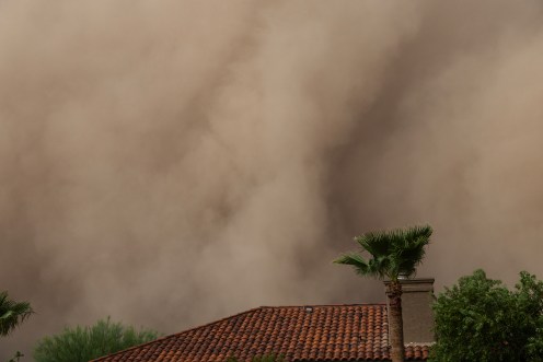 I was driving home from Costco when I looked to the south and saw dark ominous clouds which appeared to go all the way the ground. From experience, I knew this looked like a giant dust storm coming our way. I got home in about 10 minutes. Our last giant dust storm I put my camera on a tripod and videoed the storm coming in. It was very dramatic where daylight turns to night in minutes. I put that video on Youtube. You can see it here if you want to https://www.youtube.com/@barmst Look for Phoenix Dust Storm July 5, 2011.