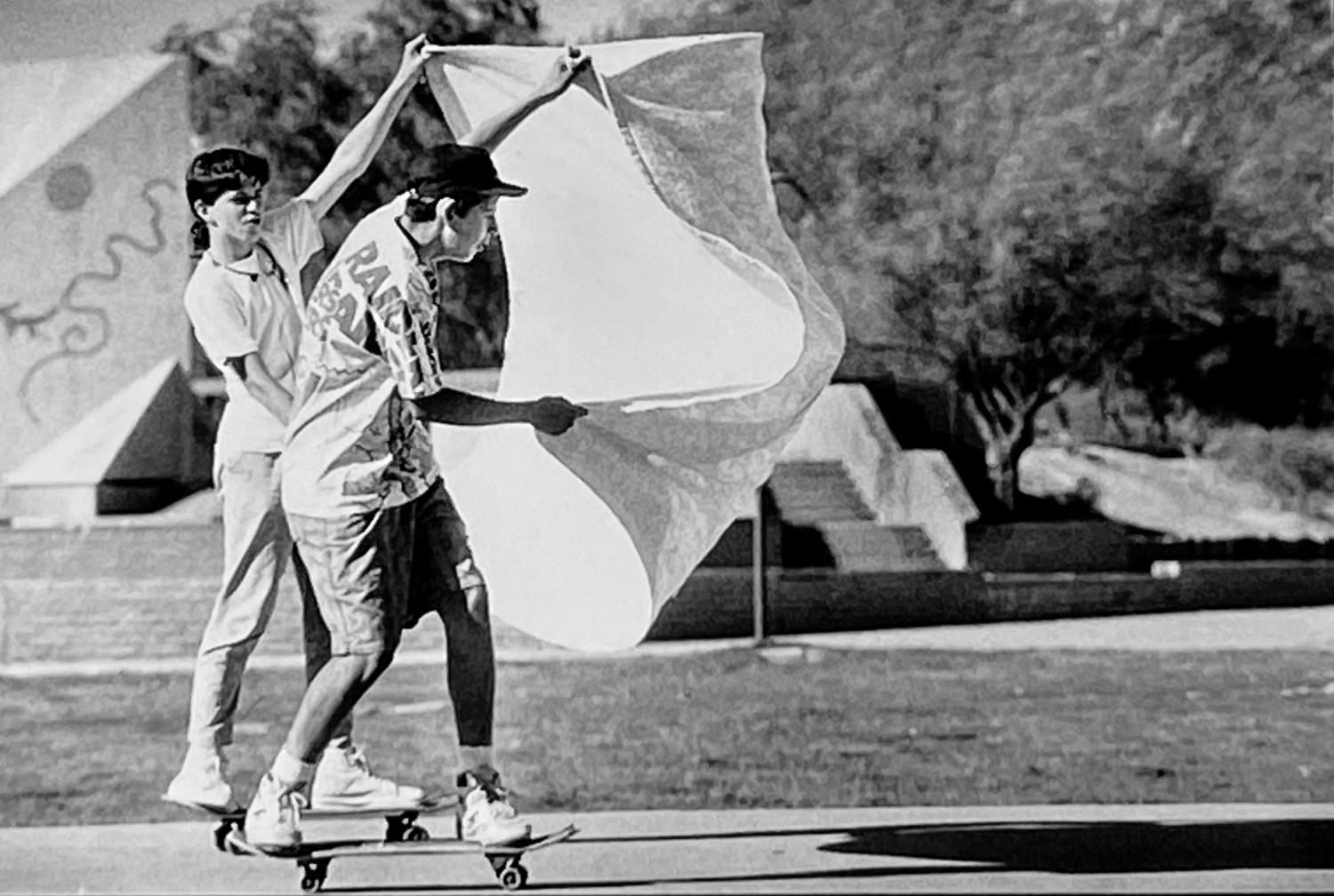 With fewer options available, the pressure to find compelling weather art became a source of anxiety. So, on this day I set out on a photo hunt to Eldorado Park, hoping to find something—anything—that could represent wind. To my absolute surprise, two boys on skateboards came sailing by, using a bedsheet as a sail. The serendipitous moment paid off, capturing a humorous and creative scene. The joy of photographic success filled my soul, and my anxiety waned away.